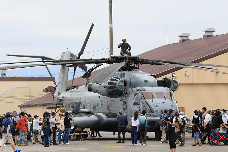 | 海兵隊の大型ヘリ CH-53Eです。 隊員がローターハブに乗っかっておどけてます。 |