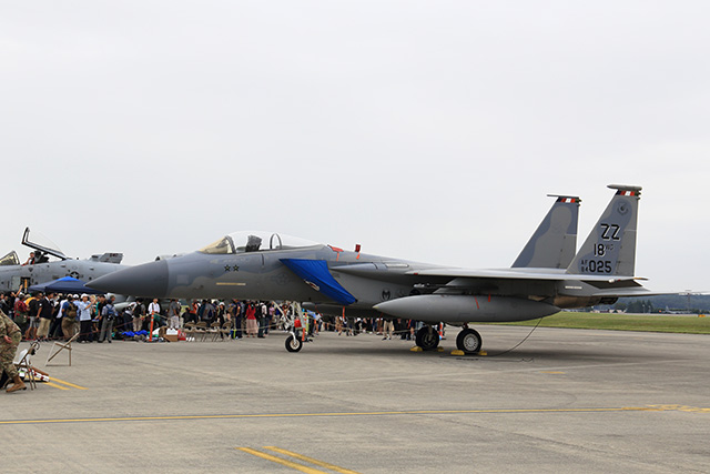 ![]() 韓国のオーサン基地からやってきたA-10攻撃機が飛行展示のために離陸します。 A-10は、何度か見たことがりますが、その飛行を見たのは、この時が初めてです。 |